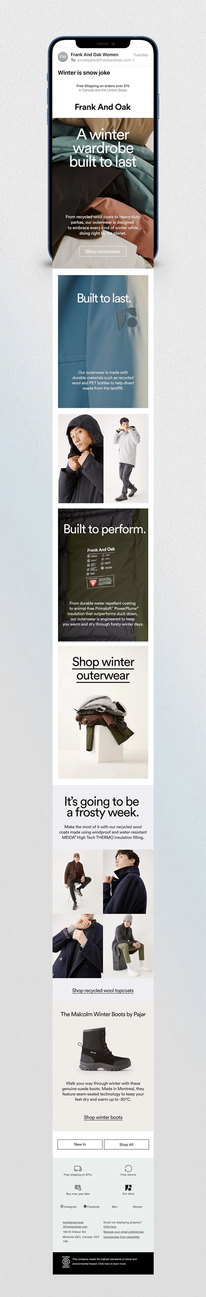 Launch campaign for Frank And Oak’s sustainable technical outerwear and natural fibre winter collection. With a playful interpretation, this campaign is inspired by nature lovers everywhere, conscious explorers who hold their values close to their hearts, honouring the great Canadian outdoors with a light-hearted spirit.