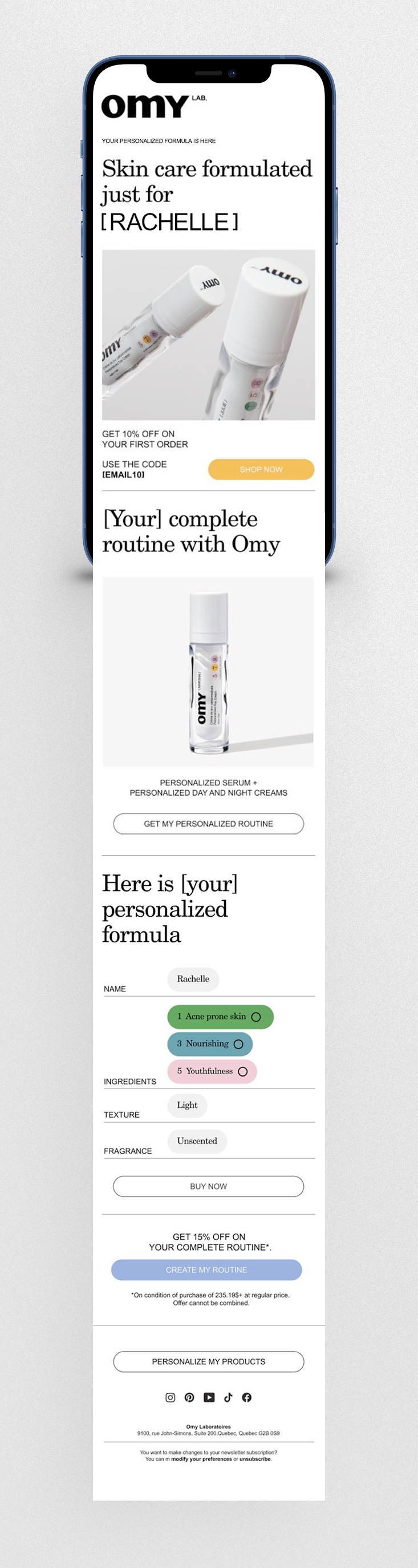 Launch campaign and branding work for Omy Laboratoires, a Quebec-based skincare and beauty start-up with a focus on personalized products and an AI diagnostic system for accurate skin therapy, Skin IA.